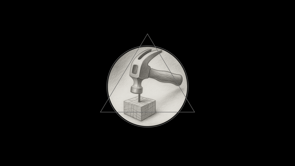 An altogether different example might help to clarify the cooperation of the three forces. Consider a hammer and a nail – the hammer constitutes an active force in relation to the passive nail. Furthermore, they could easily be a rock and a wooden peg, or power drill and a lag screw, even a stapler and a staple; the principle is the same.