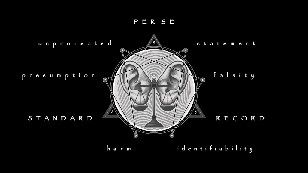 Defamation doctrine clarifies the boundaries. Slander consists of spoken accusations, transient but devastating. Libel consists of written or published falsehoods, permanent and repeatable. Certain statements fall into per se categories, such as allegations of crime, incompetence, disease, or sexual misconduct. These categories are considered damaging on their face and do not require proof of damages. A successful claim requires falsity, publication to a third party, identification of the target, fault, and harm. For public figures or matters of public concern, actual malice must be shown. For private individuals, negligence suffices.