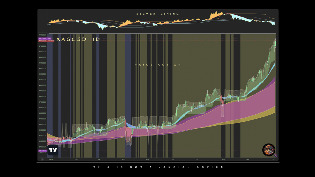 This is the real design utility of Silver Lining: not to forecast direction, but to model which side has institutional memory behind it. The indicator speaks not to speed, but weight. Right now, that weight is leaning silver.