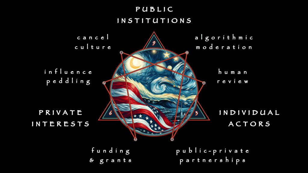 Government Influence: In order to circumnavigate constitutional protections, government agencies blur the line between private action and state censorship. They exert soft pressure on private companies to censor unwanted content on their behalf, effectively bending the law without breaking it.